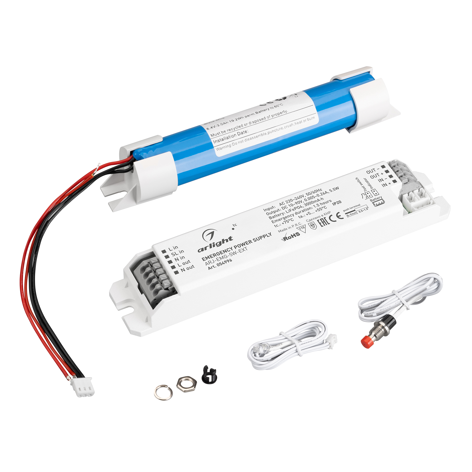 Блок аварийного питания ARJ-EMG-5W-EXT (10-90V, 1.5H, LiFePO4) (Arlight, IP20 Пластик, 3 года) 054996 в Белгороде