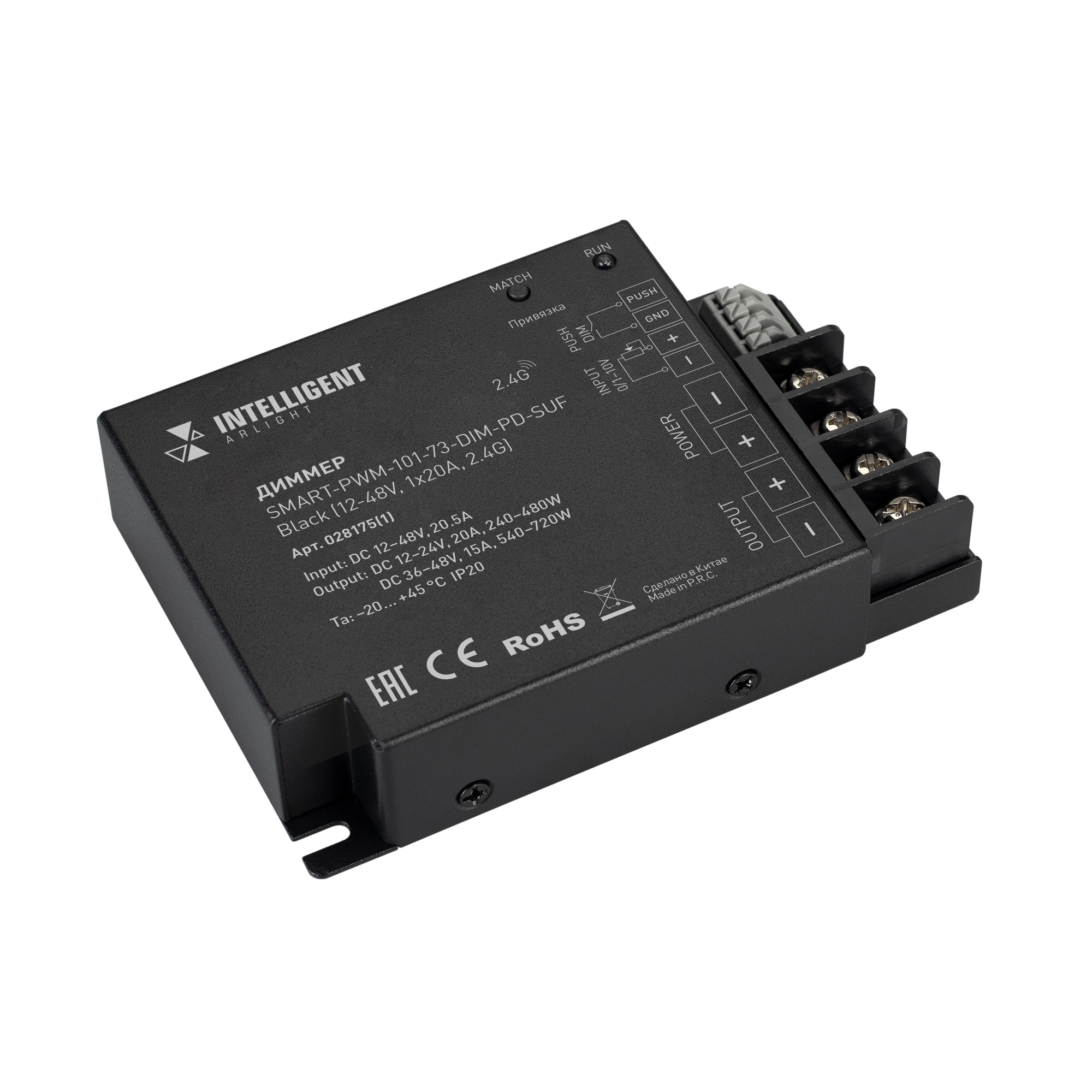 INTELLIGENT ARLIGHT Диммер SMART-PWM-101-73-DIM-PD-SUF Black (12-48V, 1x20A, 2.4G) (IARL, IP20 Металл, 5 лет) 028175(1) в Белгороде