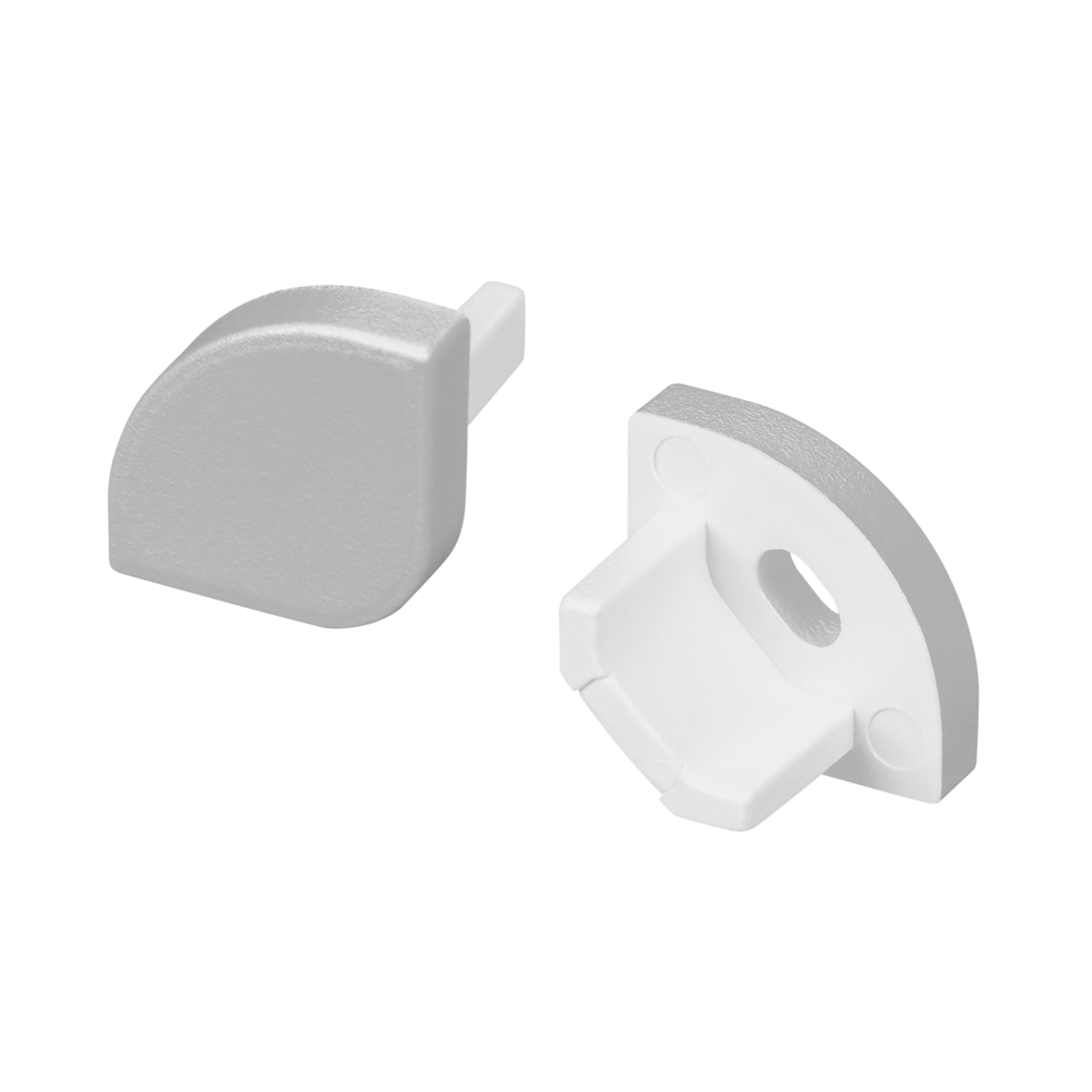 Серебристые заглушки (2 шт.: одна- с отверстием, вторая - глухая) для профиля ARH-KANT-H8. Придают законченный вид светильнику, а также защищают светодиодную ленту от внешних факторов (грязи, пыли и прочего). Отверстие в заглушке позволяет вывести кабель питания светодиодной ленты.