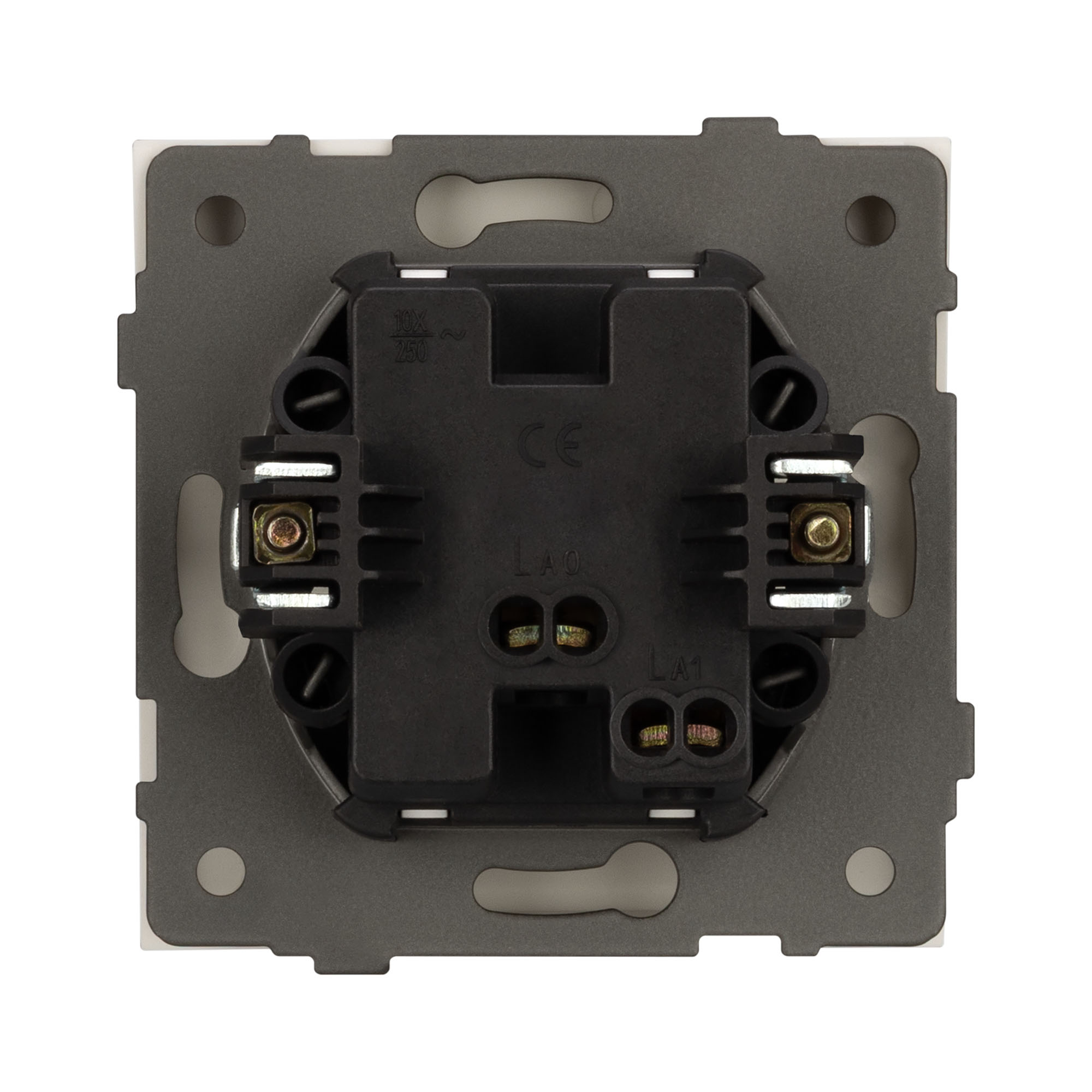Механизм звонкового выключателя на 1 пост 1 клавиша. Цвет - белый, с Soft-Touch покрытием. Без фронтальной рамки. Уровень пылевлагозащиты IP20. Выключатель устанавливается в стандартный подрозетник круглого сечения диаметром 60мм.