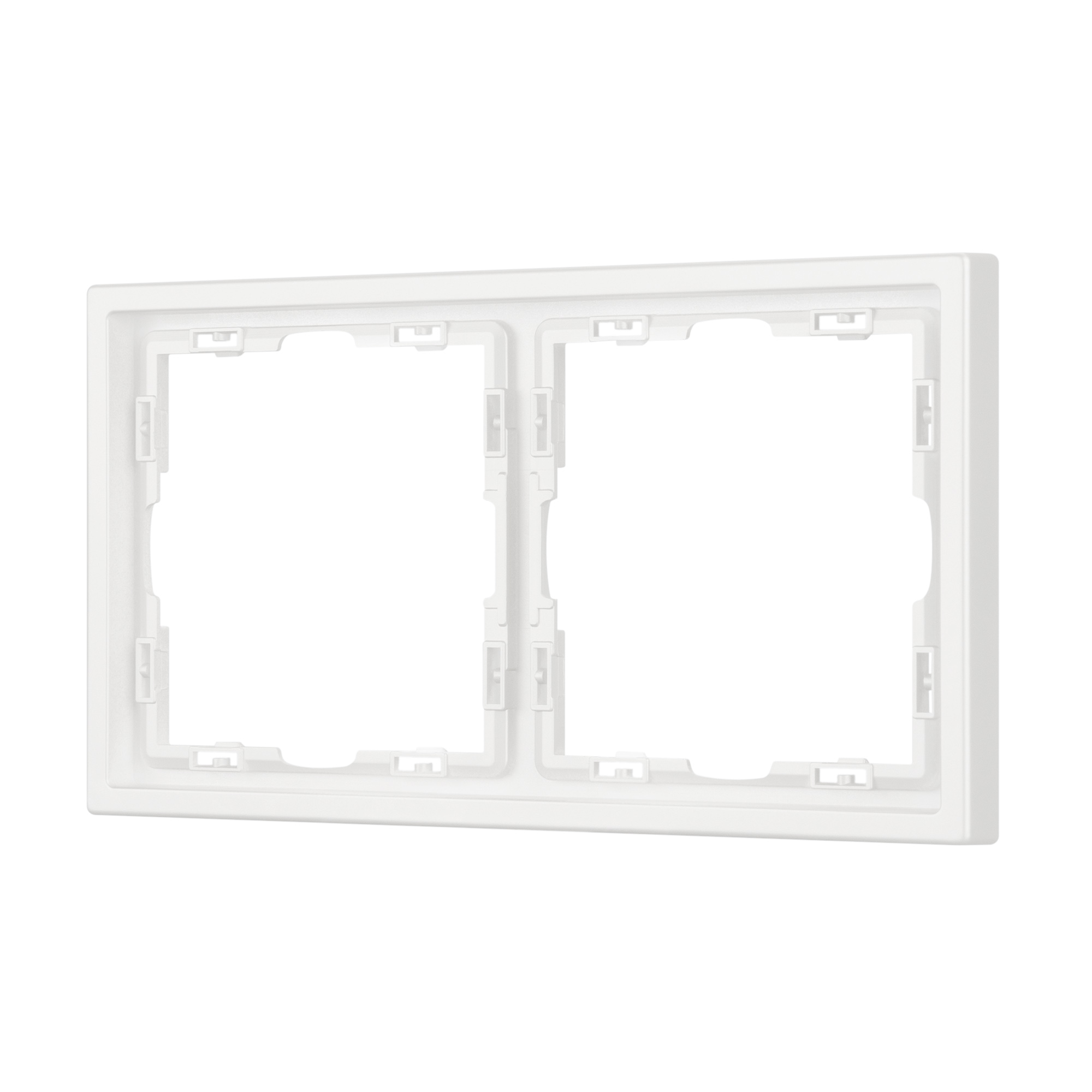 Рамка пластиковая на 2 поста, под встраиваемый механизм. Цвет - белый, с Soft-Touch покрытием. Среднего уровня герметичности IP20. Ориентация монтажа горизонтальная.