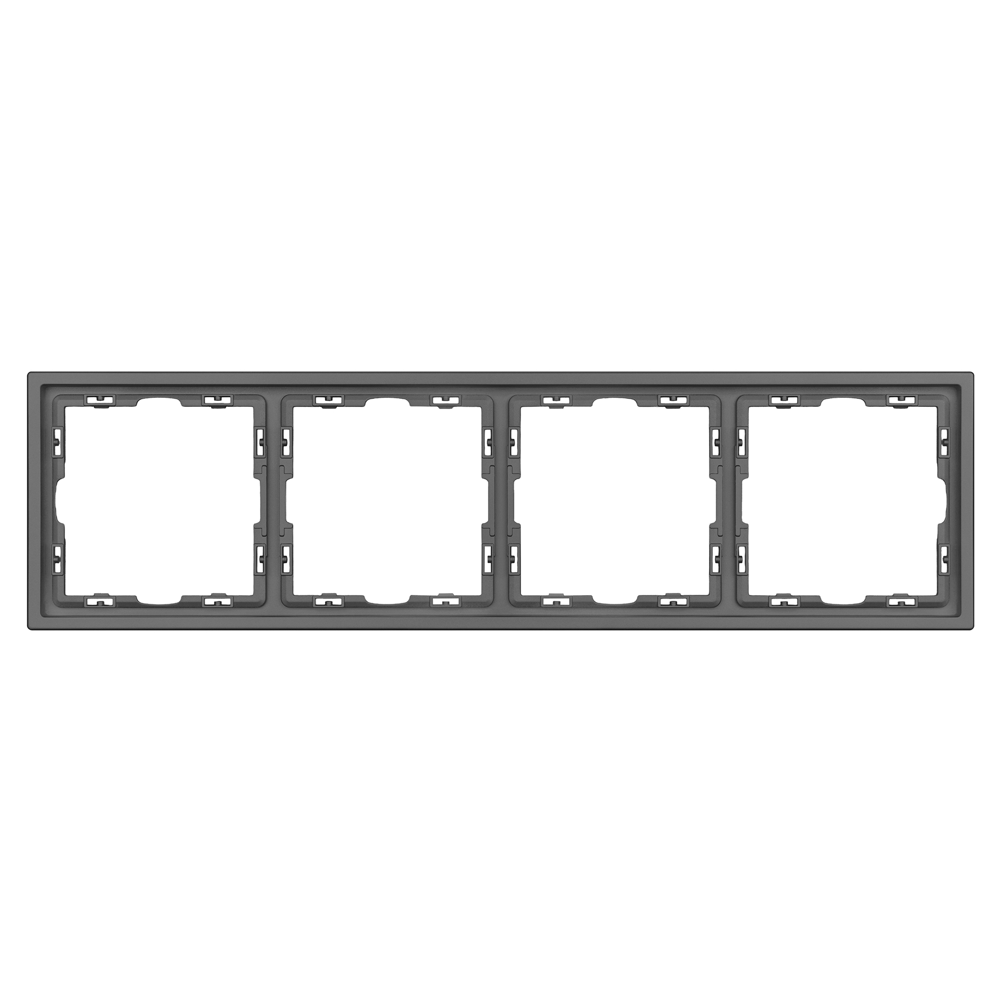 Рамка пластиковая на 4 поста, под встраиваемый механизм. Цвет - серый, с Soft-Touch покрытием. Среднего уровня герметичности IP20. Ориентация монтажа горизонтальная.