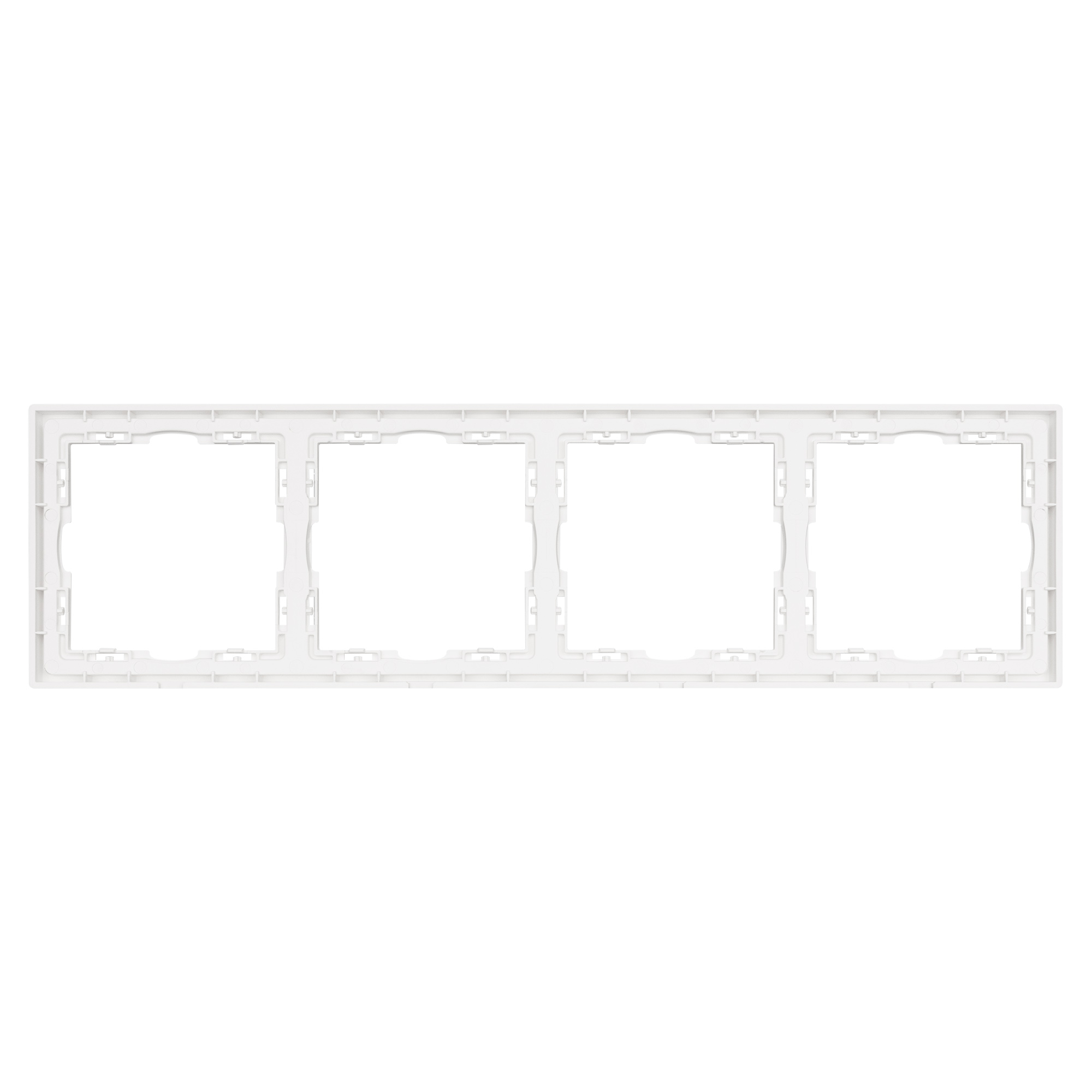 Рамка пластиковая на 4 поста, под встраиваемый механизм. Цвет - белый, с Soft-Touch покрытием. Среднего уровня герметичности IP20. Ориентация монтажа горизонтальная.