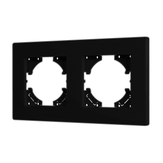 Рамка пластиковая на 2 поста, под встраиваемый механизм. Цвет - черный. Среднего уровня герметичности IP20. Ориентация монтажа - горизонтальная (основным ориентиром служат посадочные выступы для накладки механизма).