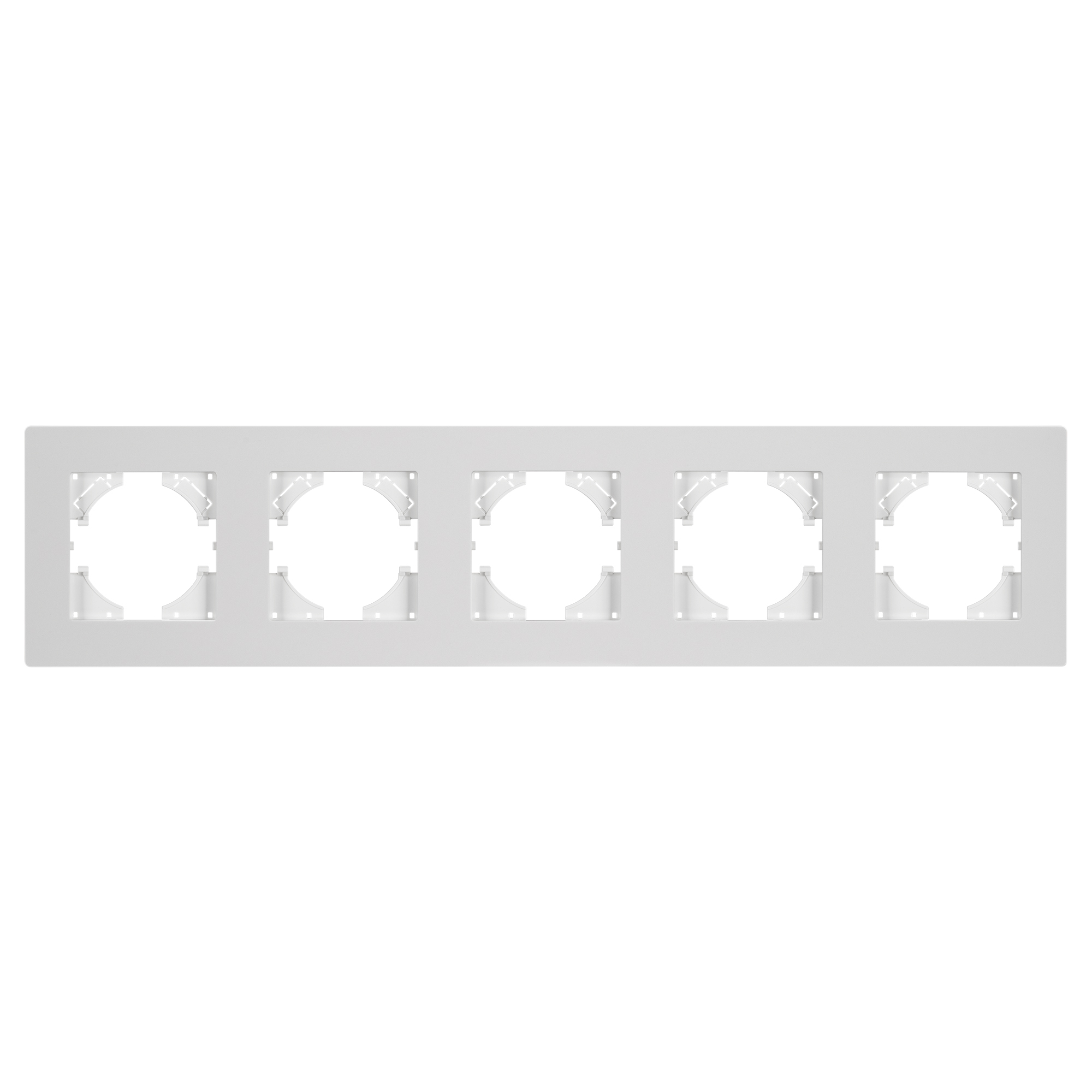 Рамка пластиковая на 5 постов, под встраиваемый механизм. Цвет - белый. Среднего уровня герметичности IP20. Ориентация монтажа - горизонтальная (основным ориентиром служат посадочные выступы для накладки механизма).