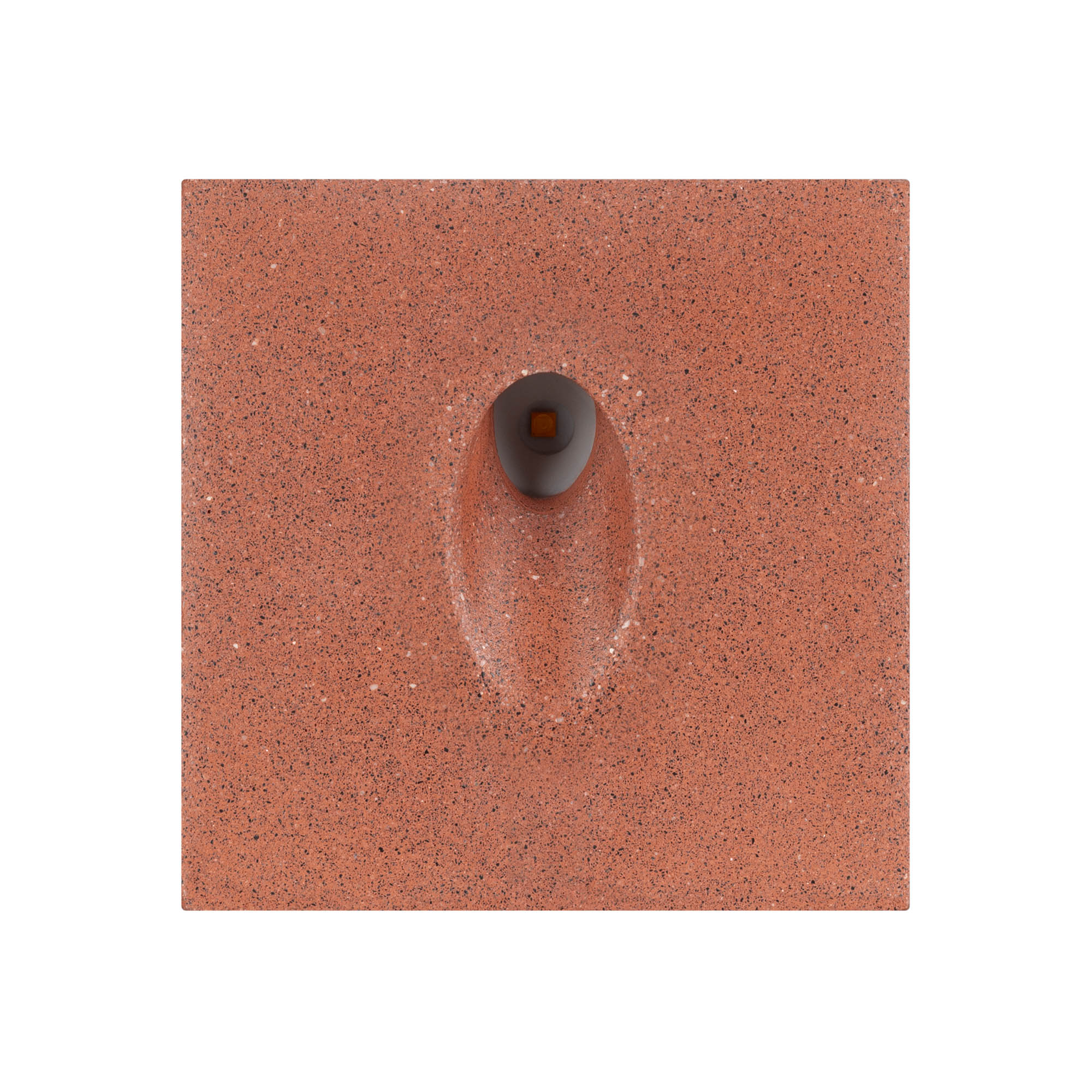 Светодиодный встраиваемый квадратный светильник для стен, лестниц. Мощность 3Вт, световой поток 150 лм, теплый 3000К, угол 45x70°, CRI>80, напряжение 230 В. Квадратный корпус из бетона темно-красного цвета и алюминия. Степень защиты IP65. Питание AC230V, мощность 3Вт. Размеры LхWхH 100х100x76 мм. Драйвер встроенный, пульсация <0.5%.