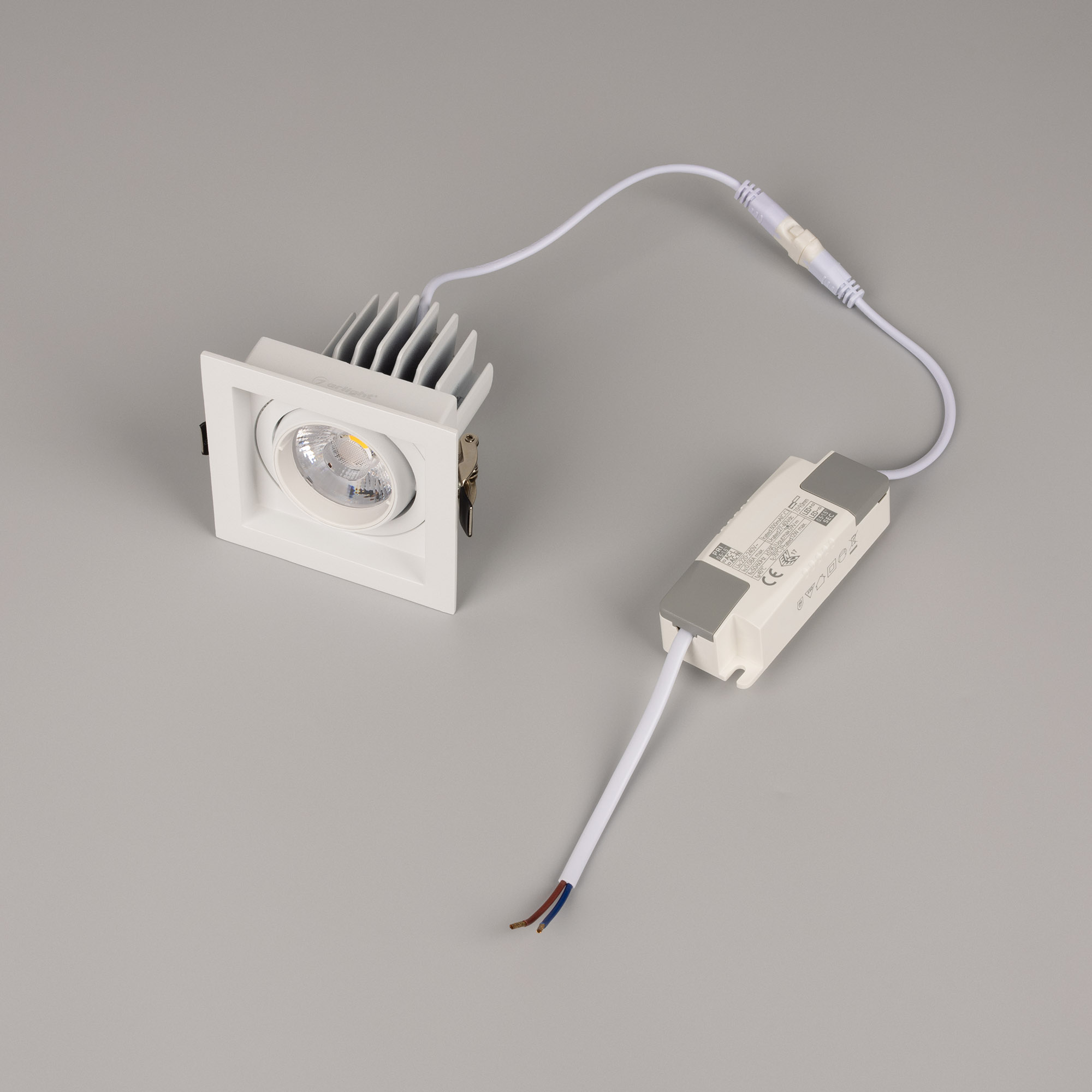 Встраиваемый карданный поворотный светильник с высоким индексом цветопередачи CRI>92 предназначен для создания качественного освещения. За основу поворотного механизма светильника взят принцип кардана – подвижное соединение двух колец, вложенных одно в другое. Световой модуль вращается вокруг своей оси на 360 градусов и отклоняется от горизонта на 30 градусов, что позволяет с лёгкостью регулировать направление пучка света и его концентрацию на определенной зоне. Особая конфигурация корпуса из алюминия оригинально смотрится в интерьере и позволяет эффективно отводить тепло. Светильник с углом рассеивания 20 градусов отлично подходит как для локальной акцентной подсветки витрин, прилавков магазинов, бутиков и стендов выставочных залов, так и для общего освещения. Легко устанавливается с помощью пружин в монтажное отверстие потолка. В комплекте поставляется драйвер, что позволяет безопасно и быстро подключать светильник напрямую к сети переменного тока 230 В.
